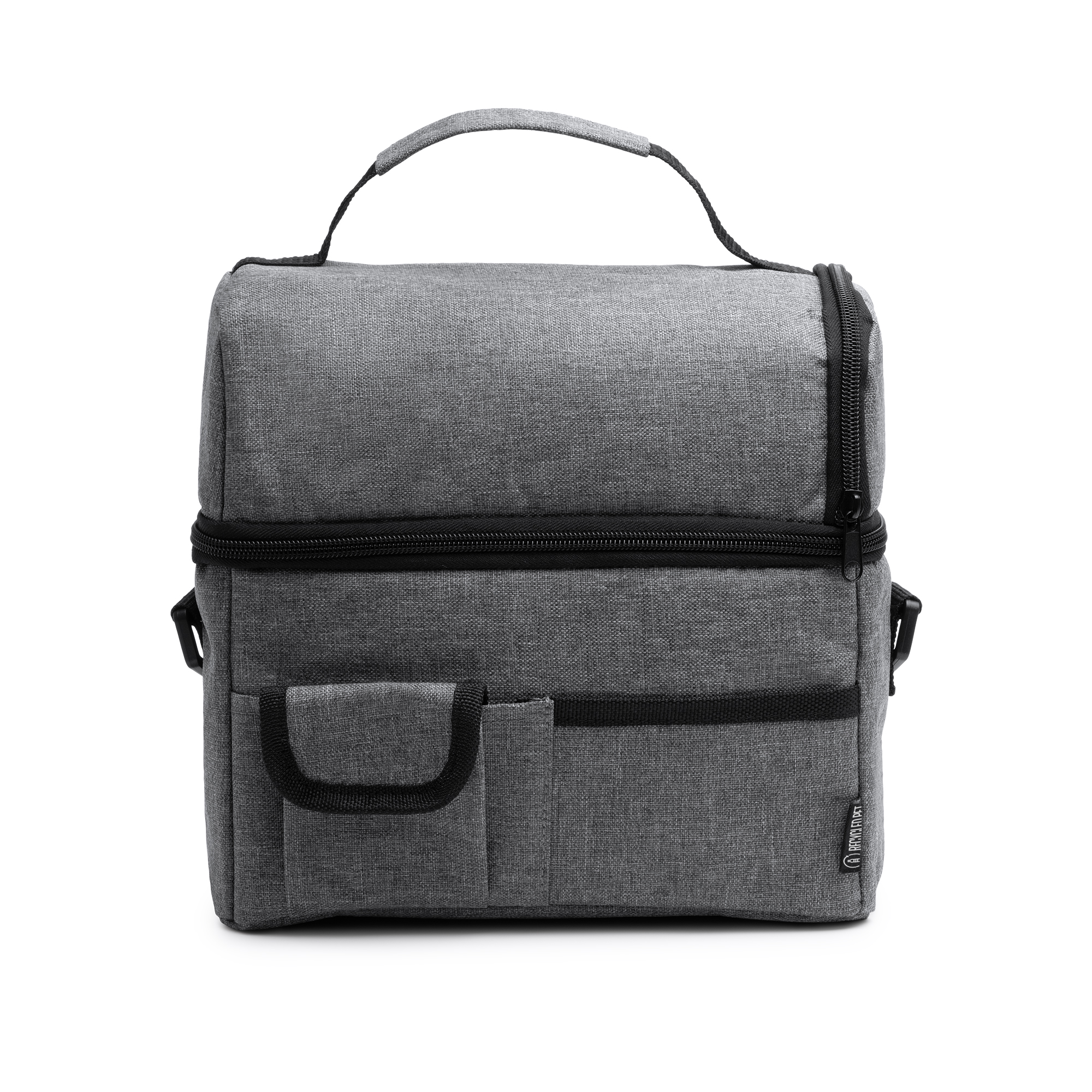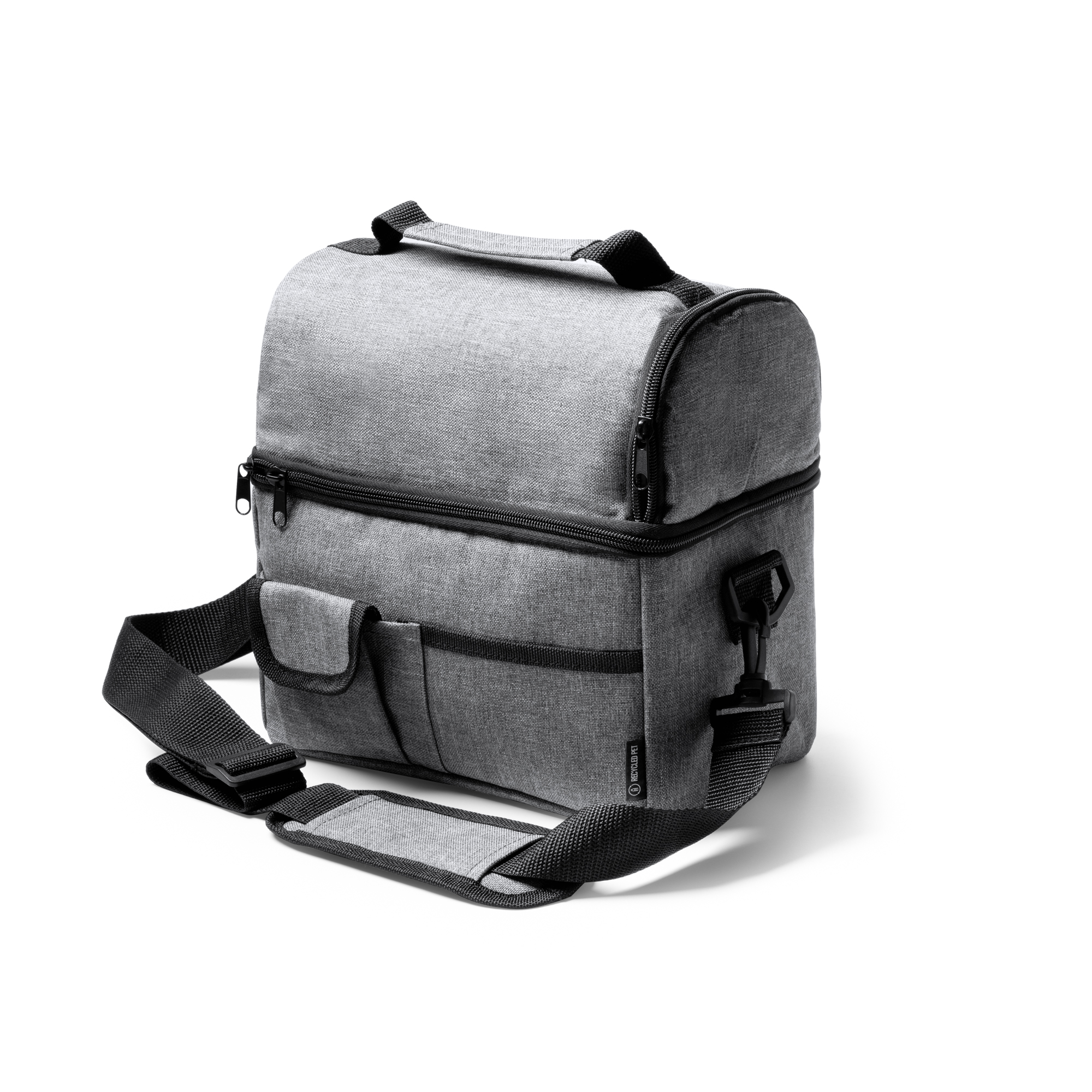 Nevera multiusos elaborada con RPET 600D, perfecta para mantener tus alimentos y bebidas frescos mientras te desplazas. Con compartimentos interiores isotérmicos, podrás mantener tus alimentos a la temperatura adecuada durante más tiempo. Cuenta, también, con bolsillos exteriores para un espacio adicional para guardar otros utensilios, o servilletas y pequeños snack. Cuenta con cinta bandolera acolchada ajustable con mosquetón te brinda comodidad y versatilidad al transportar la nevera.
