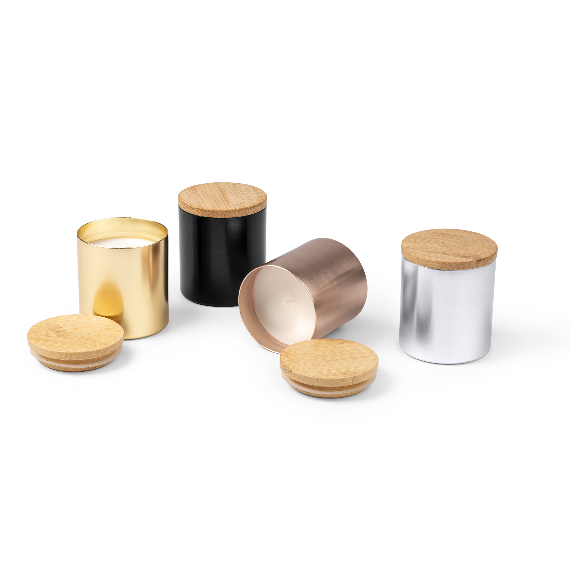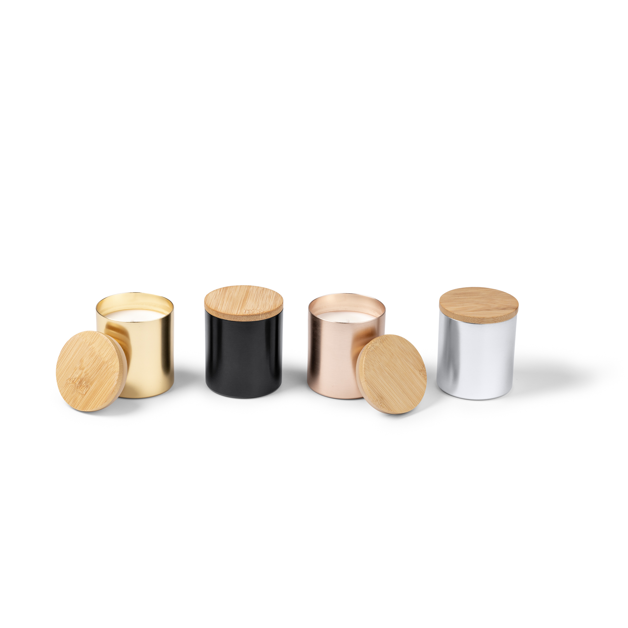 La vela aromática está contenida en un elegante recipiente de aluminio con acabado metalizado y tapa de bambú. Con un delicioso aroma a vainilla, es perfecta para crear un ambiente cálido y acogedor en cualquier lugar de la casa.
