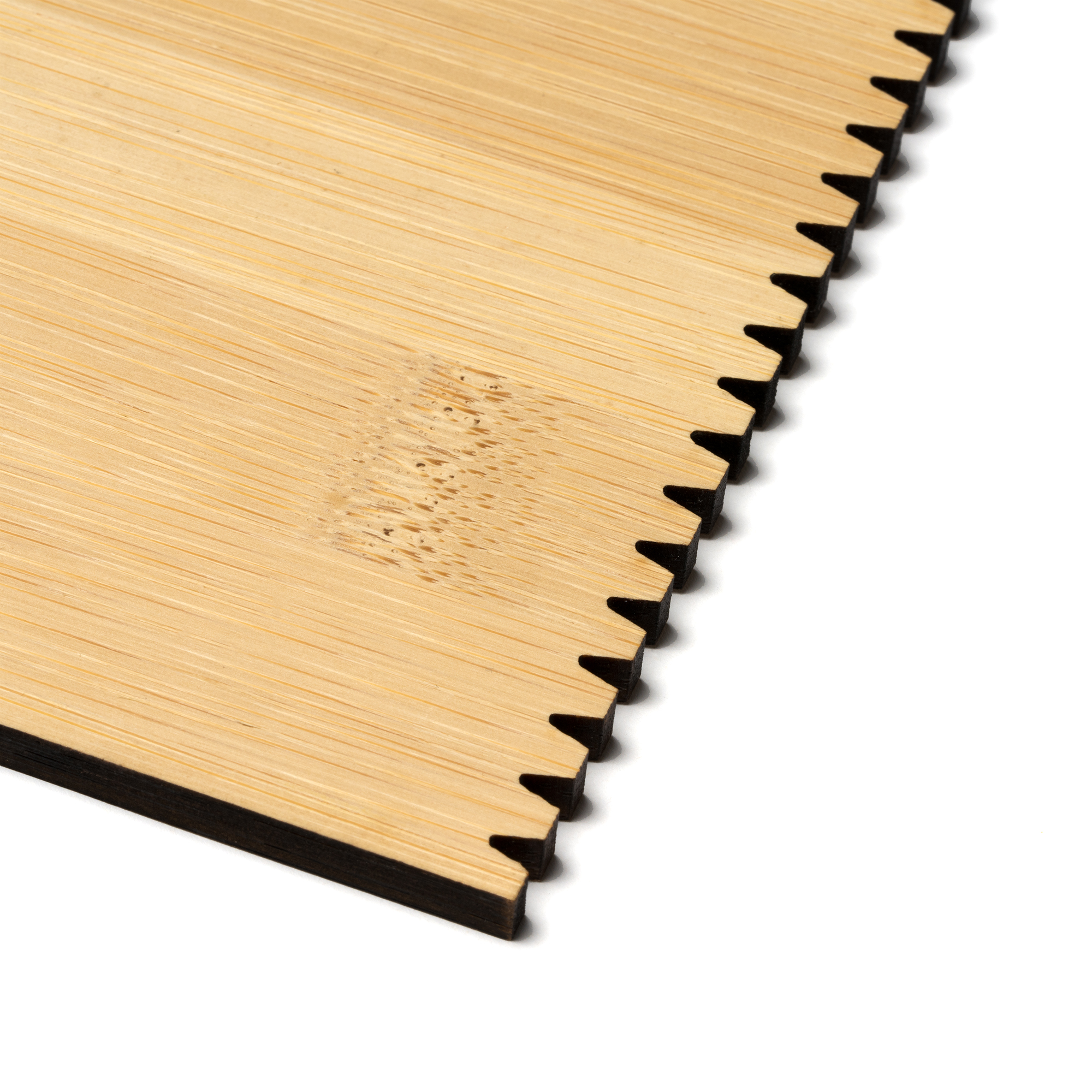 Rascador de hielo realizado en bambú con un lado de acabado en sierra y otro liso.