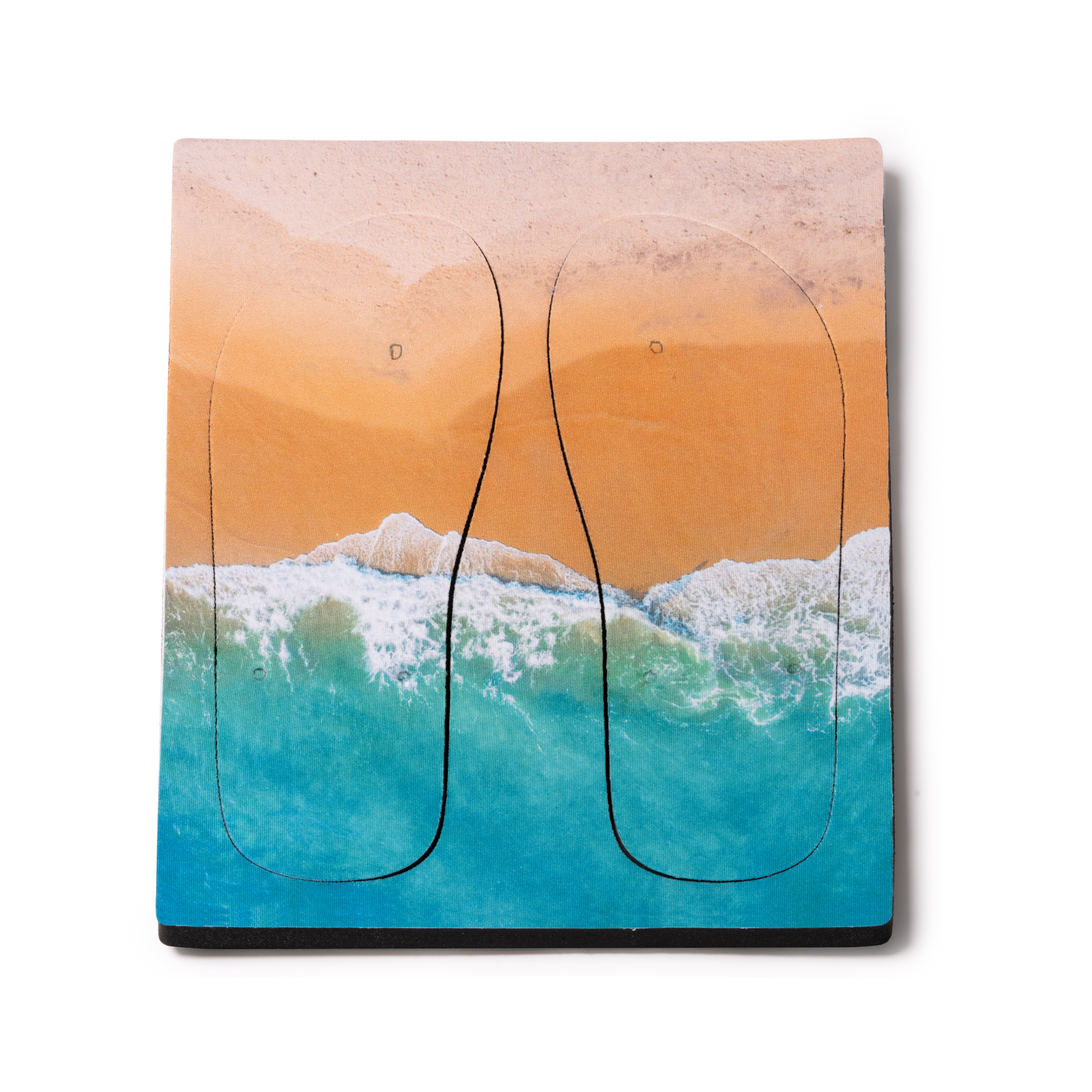 Par de chanclas para sublimación con cómoda suela de PE en tablero precortado con su forma. Incluye tiras de PVC en color negro.