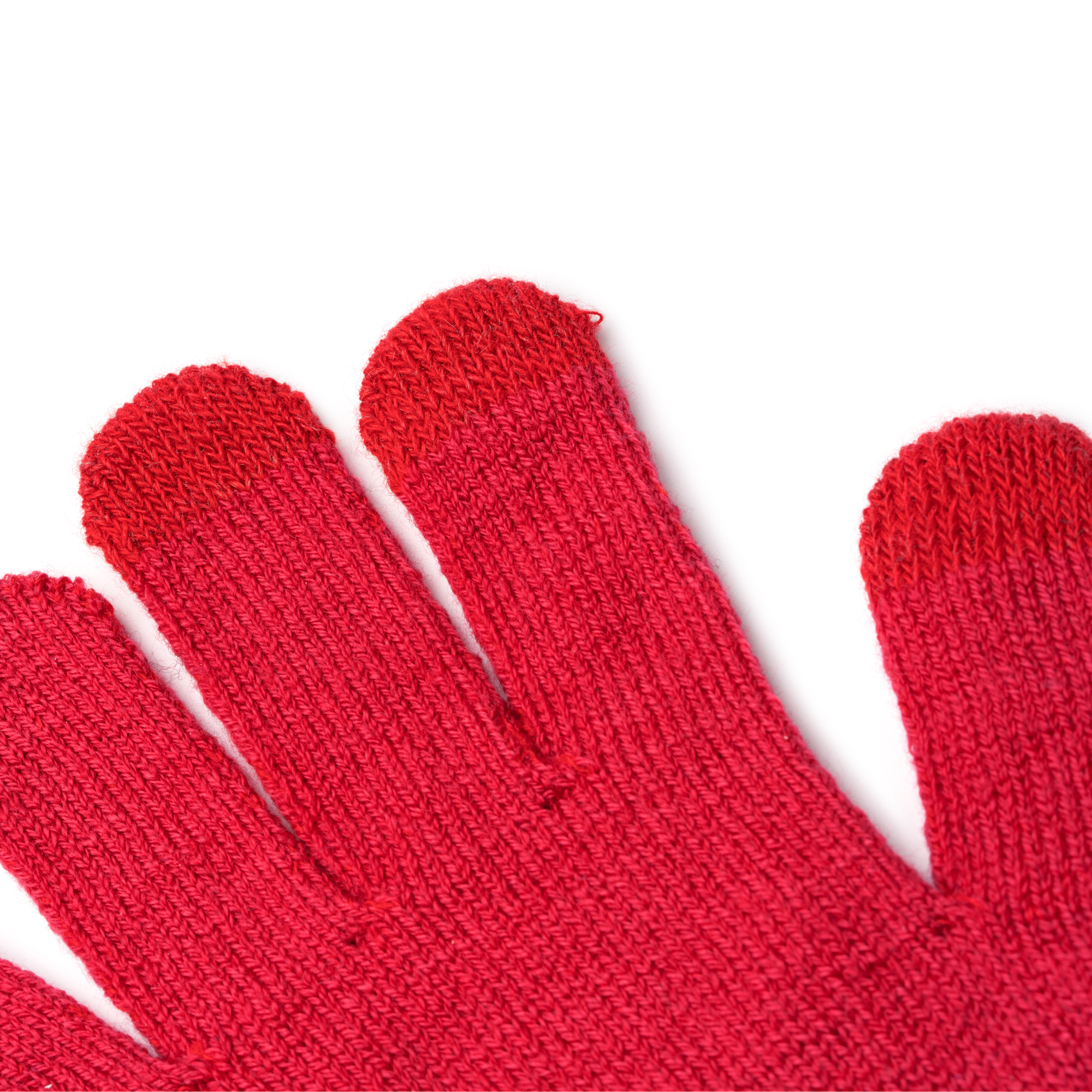 Guantes realizados en poliéster reciclado con 3 dedos táctiles, corazón, índice y pulgar. La zona táctil está realizada en color a juego con el guante.